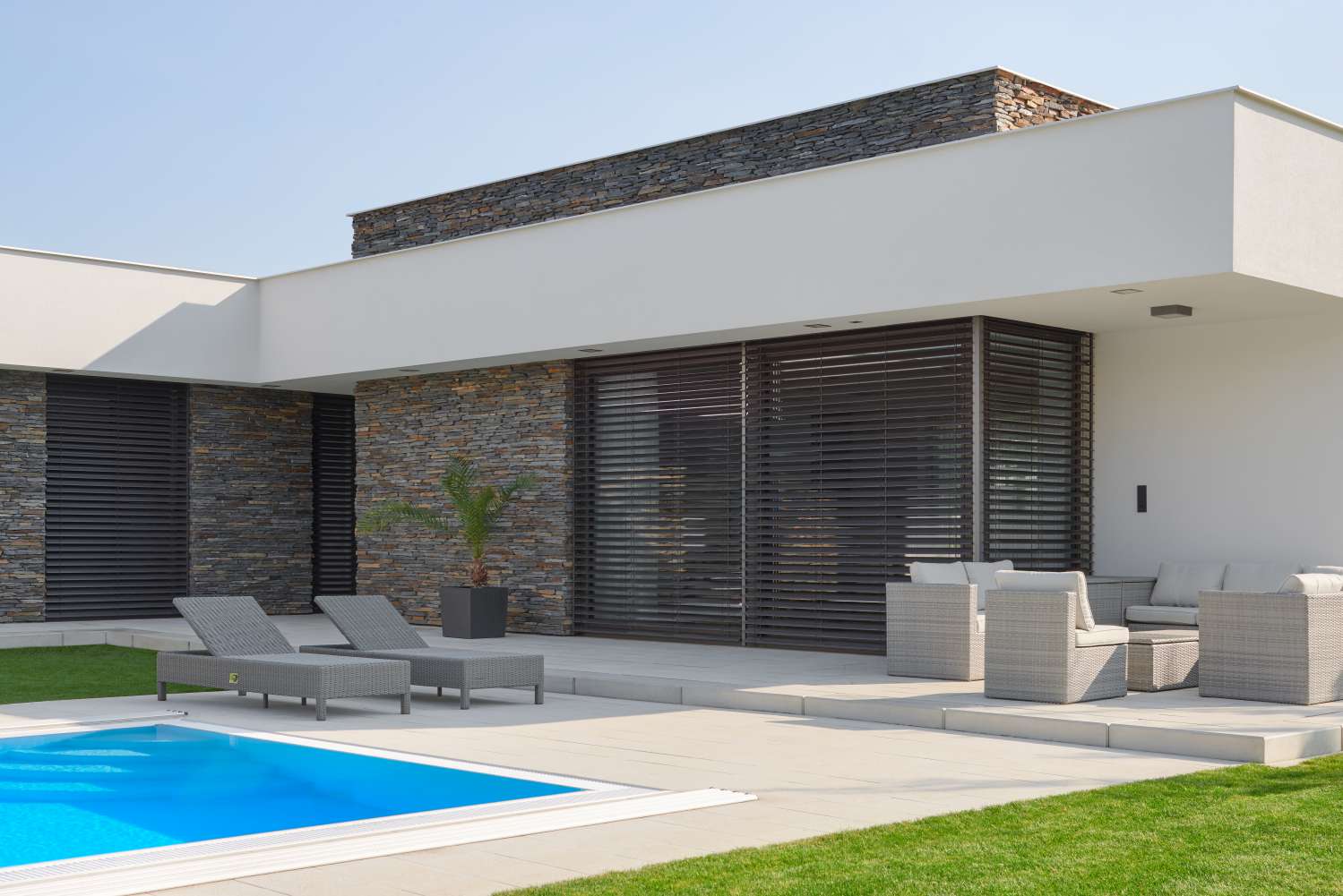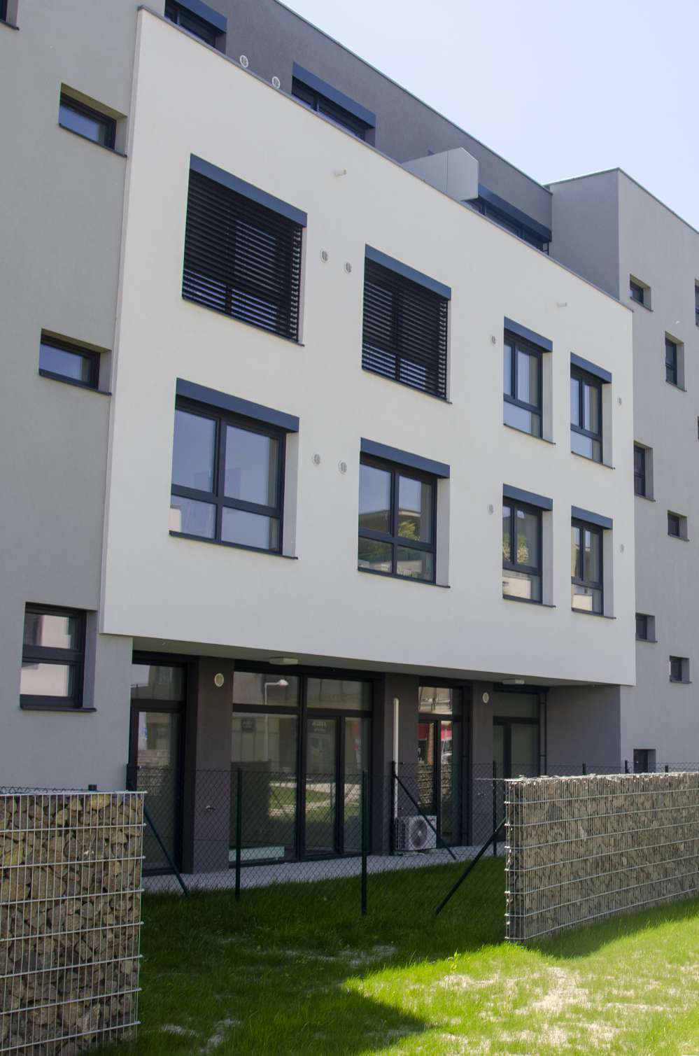 a zsaluziák domináns arculata az épületen, ezért dönt a letisztult
